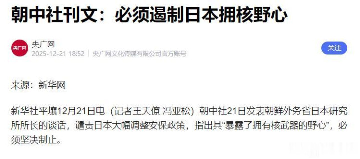 就在高市早苗还沉浸在效仿小泉纯一郎、幻想通过解决“绑架问题”来捞取政治资本的美梦中时,朝鲜朝中社的一篇通稿,用这四个字让整个东亚局势的空气瞬间凝固。“战犯国家”。